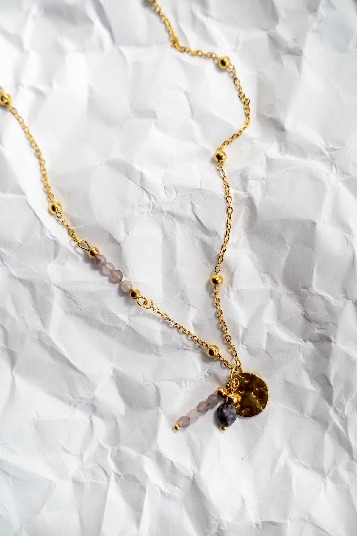 PANNA – naszyjnik z ametystem i jaspisem, kolor złoty